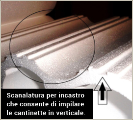 Le nostre cantinette hanno inoltre una caratteristica scanalatura che permette un incastro più stabile e la possibilità di impilarle verticalmente l’una con l'altra, così da poter conservare le vostre bottiglie in modo ideale e ordinato (la posizione orizzontale è d'obbligo per una migliore conservazione del vino).